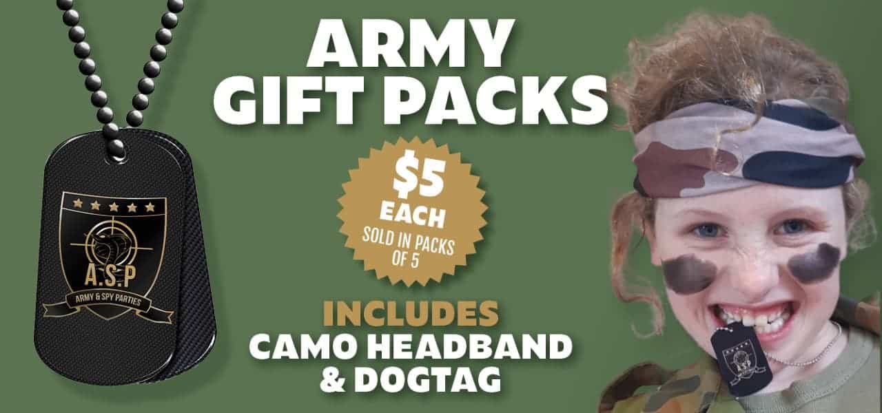 We all know the feeling — you’re throwing a birthday party for the kids but you’re wracking your brains as to what should go in their friends’ loot bags. Now there’s no need to fret, as Army and Spy Parties has you covered. Simply tick the box on checkout and we’ll handle the rest.